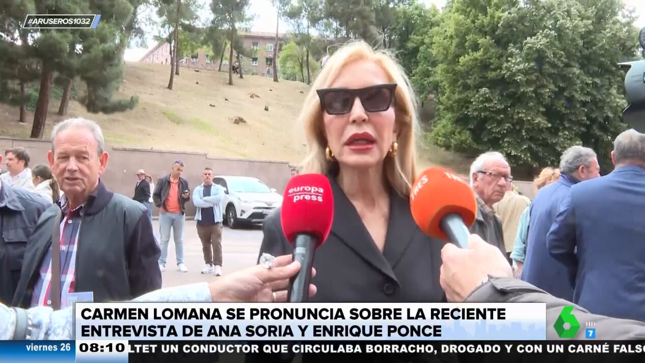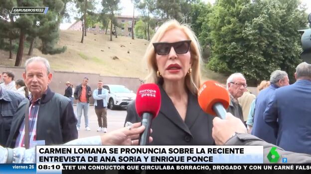 Carmen Lomanase ha pronunciado sobre la reciente entrevista de Ana Soria y Enrique Ponce en el plató de El Hormiguero. "Creo que era innecesario, pero que cada uno asuma su vida y sus riesgos", destaca Carmen Lomana, que critica que "hablaron de que no les habían tratado bien, pero que tengan empatía" de cómo se sentía Paloma Cuevas.