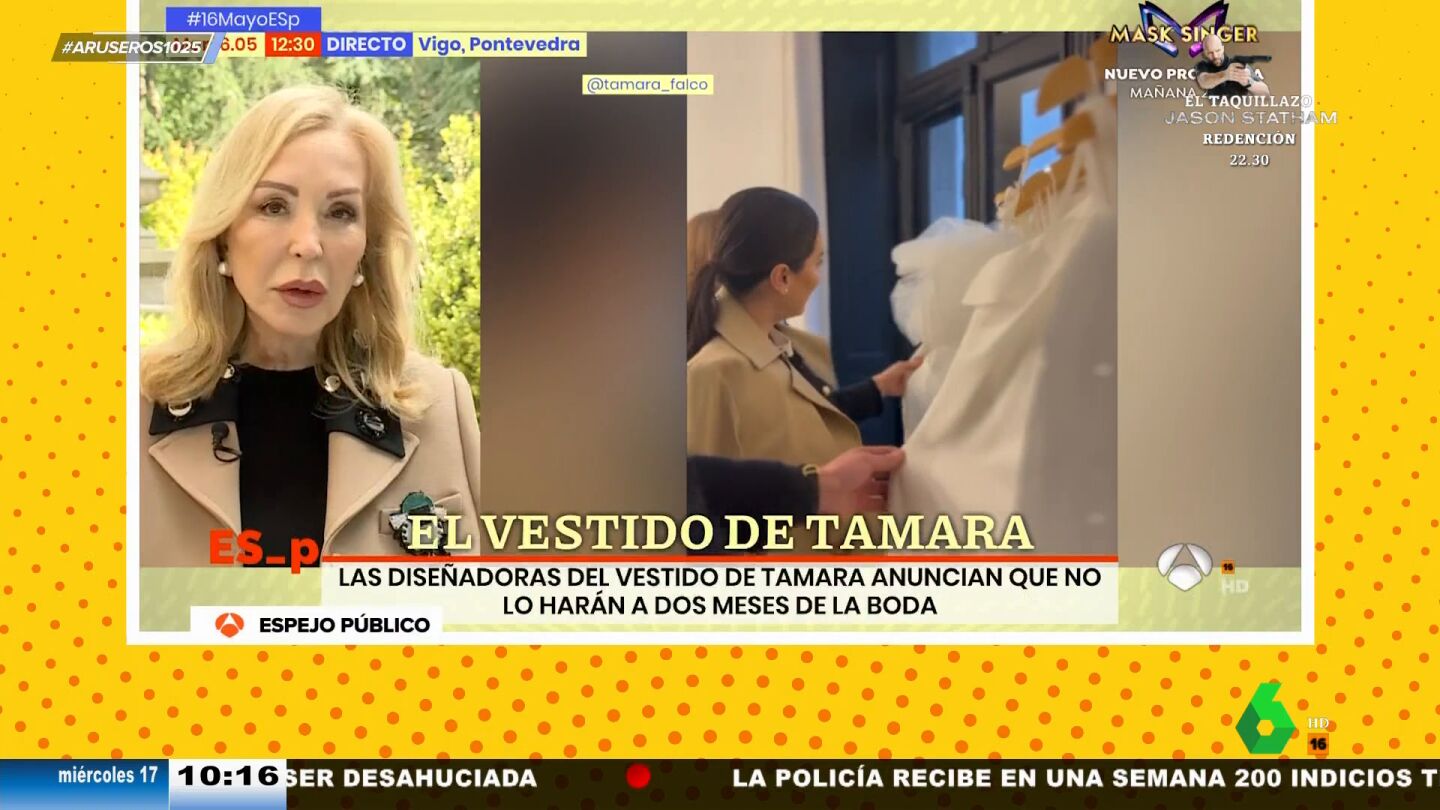 Tamara Falcó se ha quedado sin vestido de novia después de que la firma nupcial que se lo estaba haciendo haya roto su acuerdo con la marquesa por sus "exigencias". Así lo ha explicado 'Sophie et voilà' en un comunicado en el que dan a entender que Tamara Falcó les pedía copiar un vestido de otra marca. "Por el respeto que nos merece la originalidad de los trabajos de otras marcas de alta costura, no podemos cumplir con determinadas exigencias de la Sr. Falcó", explican en el comunicado, donde recuerdan que desde "el principio de la relación" han desaconsejado a Tamara Falcó esa propuesta "por acercarse demasiado a diseños ajenos" a su firma.