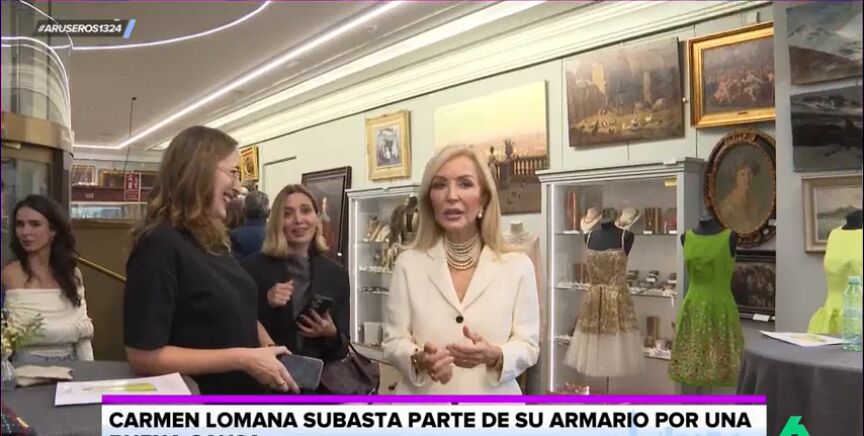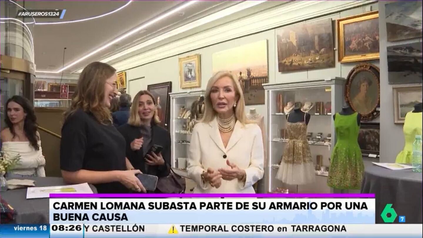 Carmen Lomana ha subastado parte de su armario por una buena causa. "La verdad que he visto las imágenes y hay vestidos espectaculares", destaca Alfonso Arús en el plató de Aruser@s, donde Tatiana Arús da más detalles de la subasta: "Eran la sprimeras imágenes, pero la subasta se llevará a cabo el próximo 22 de octubre".