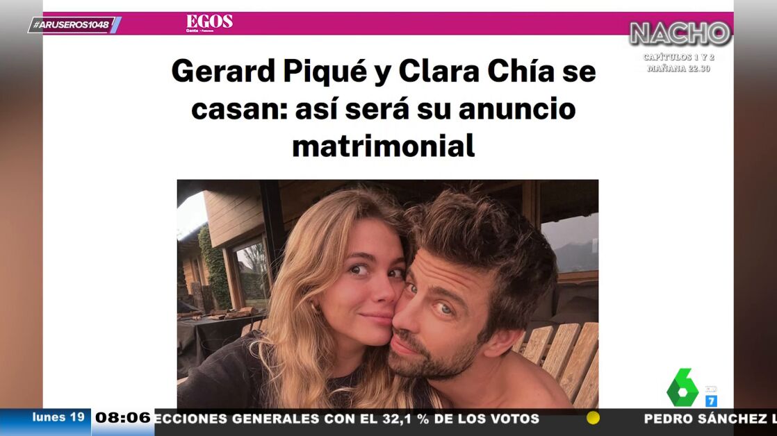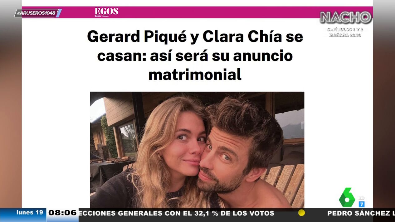 Varios medios han anunciado a queGerard Piqué y Clara Chía habrían decidido casarse, algo que anunciarían el 24 de junio en la boda del hermano del exfutbolista, Marc Piqué. "Algunos medios se atreven a apostar por el diseño que luciría Clara Chía", destaca Tatiana Arús en el plató de Aruser@s, donde detalla que "el vestido sería un vestido lencero de Name The Brand en color blanco y con flores".