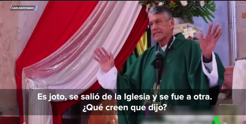 "Es 'joto', se salió de la Iglesia y se fue a otra Iglesia", le dice, malhumorado. "Pinche padre pendejo, ¿cómo va a ser 'joto' David si se enfrentó a Goliat?", razona, en su línea, el padre Pistolas. "Que se vaya a la chingada, si él es 'joto' pues que haga lo que quiera", para terminar recomendando a sus feligreses que lo "manden a la chingada".
