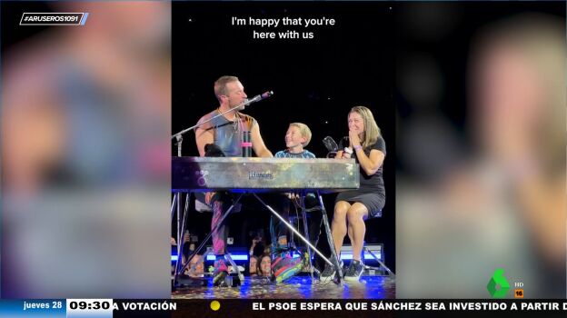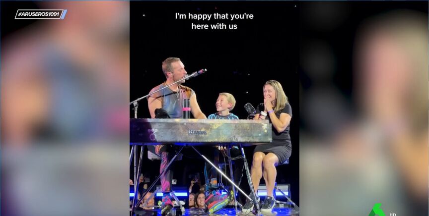 El niño, de 10 años, que comparte escenario con el cantante y con su madre, no puede estar más feliz, tal y como puede verse en este vídeo emitido en Aruser@s. "Podrías haber ido a ver a Justin Bieber (...) o a Ed Sheeran (...) o Jay-Z (...) o a Taylor Swift", prosigue Martin con su canción mientras el pequeño aplaude y miles de teléfonos móviles graban este emocionante momento de su vida para toda la eternidad.
