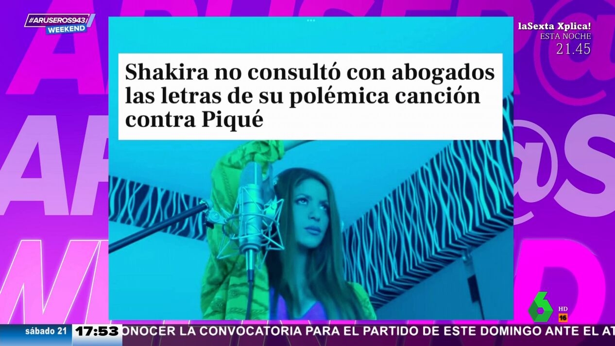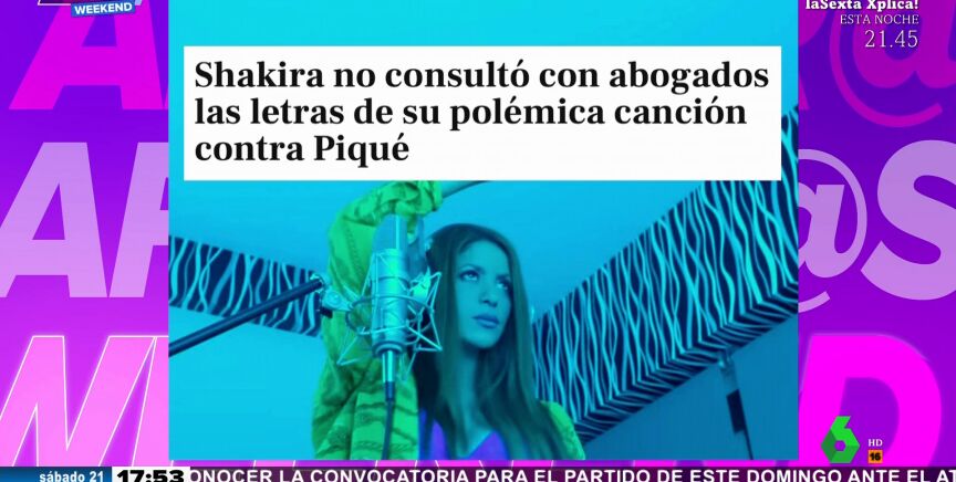 La abogada Jenny Meziani ha afirmado en Aruser@s Weekend que la pareja del futbolista Gerard Piqué, Clara Chía, podría denunciar a la cantante Shakira, por las referencias hacia su persona en la canción de la colombiana con el productor Bizarrap,'Music Sessions #53". "Aunque no se cita a Chía con su apellido, es obvio que, en todas las cadenas de televisión, etcétera, se asocia la letra de la canción a esta chica, explicaba Alfonso Arús".