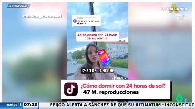 "Para poder dormir tranquilamente es bajar todas las persianas y tenemos unas cortinas especiales que se llaman blackout y que dejan la habitación completamente oscura y así podemos dormir tranquilamente", explica la creadora de contenido. "Se le ha puesto una cara de alegría a Llobet de pensar que podría vivir eternamente con sol en el exterior", comenta Alfonso Arús que imagina lo moreno que estaría en comparación con lo que ya está. Marc Llobet responde al presentador con una sonrisa que en ese caso él dormiría en la playa.