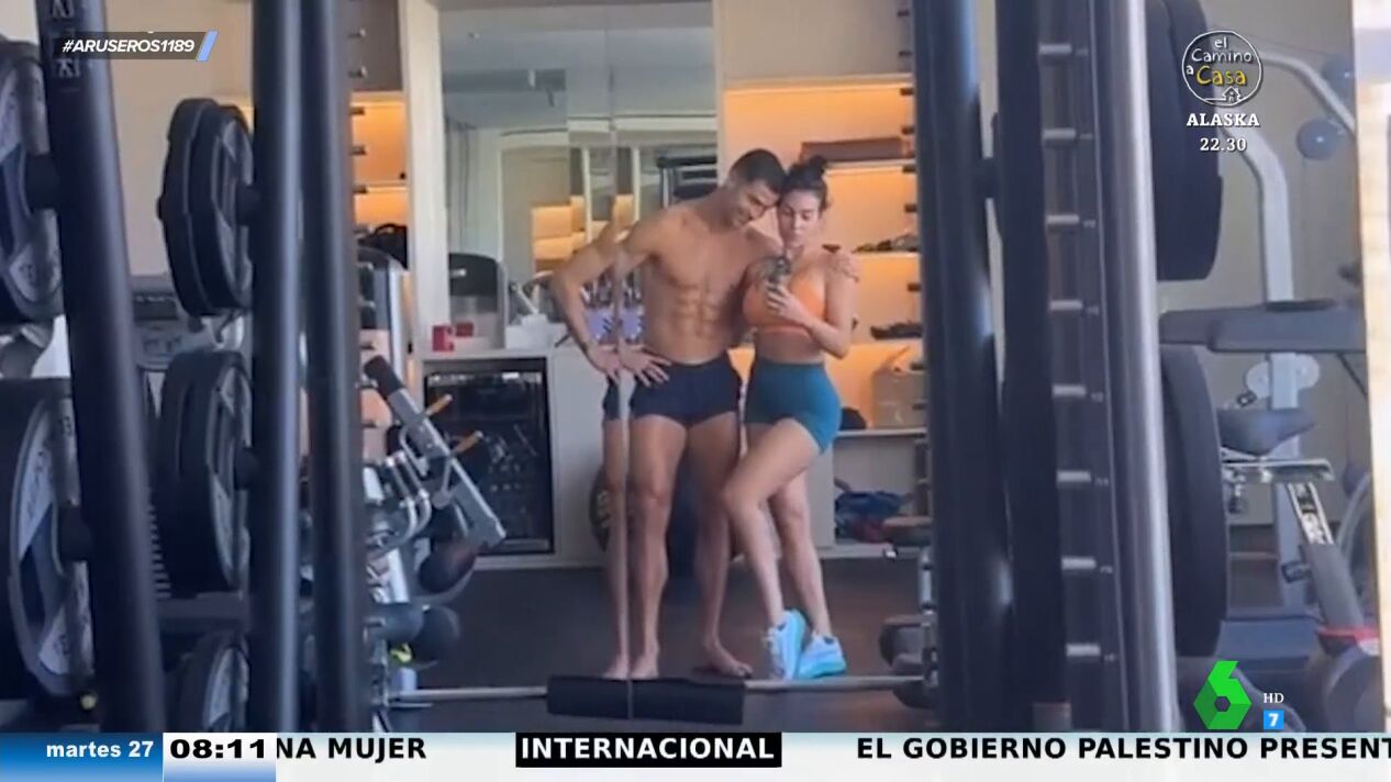 "Cristiano Ronaldo y Georgina Rodríguez nos han regalado una fotografía tras pasar por el gimnasio, que es parte de su actividad diaria", destaca Alfonso Arús en el plató de Aruser@s, donde Tatiana Arús afirma que "es una de las aficiones que más comparten". Sin embargo, a la colaboradora de Aruser@s le surge una duda sobre el futbolista.