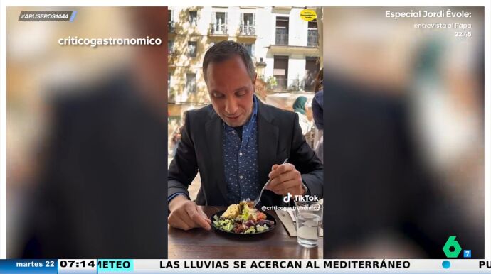 Un crítico gastronómico (@criticogastronomico en TikTok) lo pone en evidencia en este vídeo viral que recoge Aruser@s. El experto se sienta en una de las terrazas, comunes en esta zona tan turística de la ciudad condal, para valorar su menú del día: jamón, tortilla de patatas, pan con tomate y ensalada. "Cuesta 15,50 más IVA y es ilegal no tener el IVA en las cartas", señala.