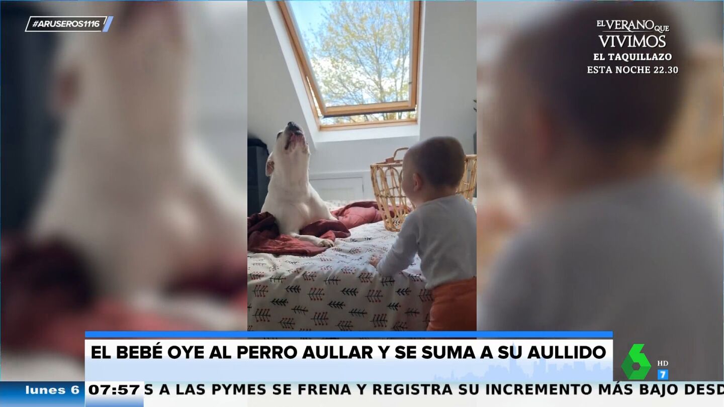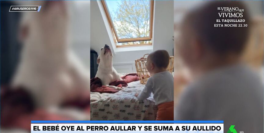 "Cuando la perra empieza a protestar el bebé sigue exactamente el mismo sonido", explica Alfonso Arús, que está completamente sorprendido con la sincronía de estos dos cantantes.