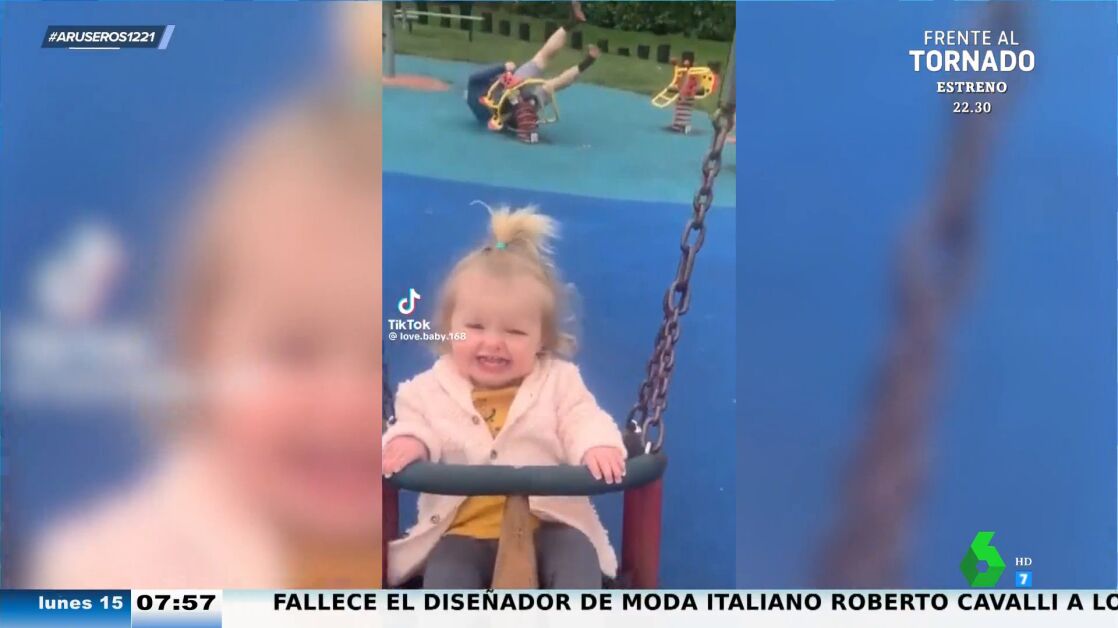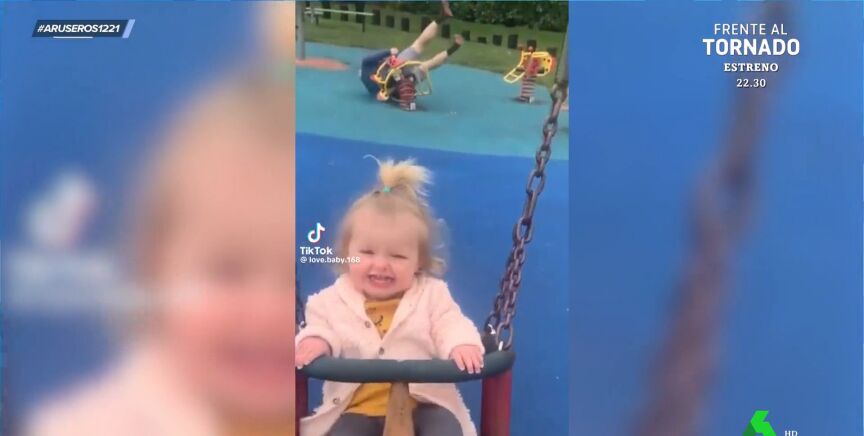"Lamentable escena en el parque con papá". Así es como anuncia Alfonso Arús la llegada de este vídeo viral a sus colaboradores de Aruser@s. En pantalla, aparece en primer plano una niña feliz, que ríe contenta y emocionada montada en un columpio.