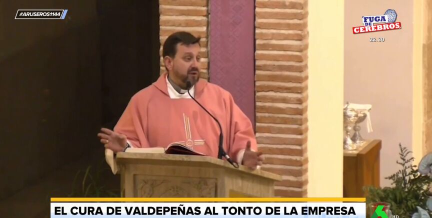 "Siempre hay un compañero del trabajo que te parece tonto, o a lo mejor te parece tonta toda la plantilla", afirma el cura de Valdepeñas en plena misa, donde reflexiona sobre cómo afectan las cenas de empresa.
