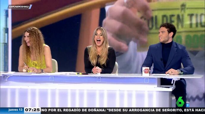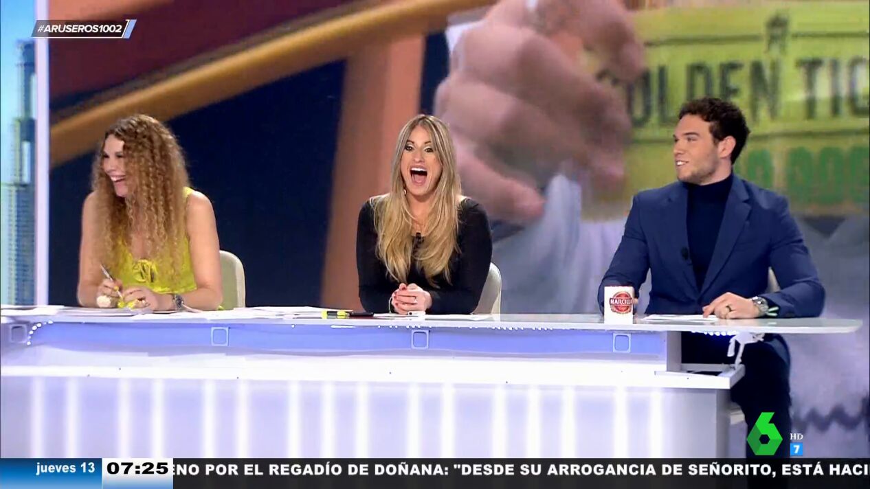 "Aquí no hay ningún padre que pueda regalar 10.000 dólares", destaca Alfonso Arús en el plató de Aruser@s, donde reflexionan sobre si el pequeño recibió los 10.000 euros de premio. "El niño ha encontrado los 10.000 dólares y el padre se lo guarda para el día de mañana", afirma Angie Cárdenas. "Esa estrategia me suena", admite Hans Arús, lanzando un divertido 'dardo' a su padre, cuya reacción puedes ver en el vídeo principal de esta noticia.