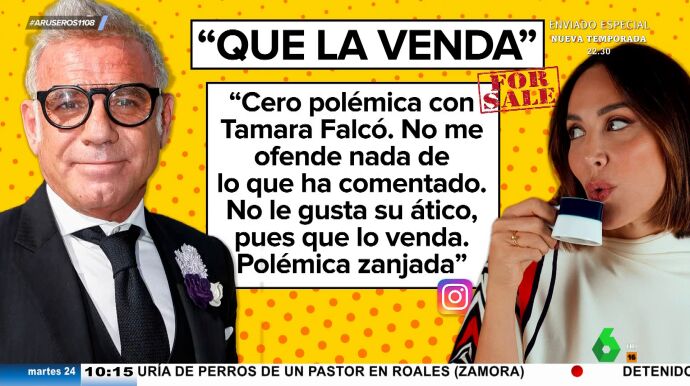 Después de que Tamara Falcó haya criticado el diseño del ático que se ha comprado para vivir junto a Íñigo Onieva, su arquitecto, Joaquín Torres, no ha dudado en lanzar una lluvia de 'dardos' a la marquesa de Griñón. "Cero polémica con Tamara Falcó. No me ofende nada de lo que ha comentado", ha afirmado ahora el arquitecto, que sin embargo, le lanza este contundente zasca: "No le gusta su ático, pues que lo venda. Polémica zanjada".