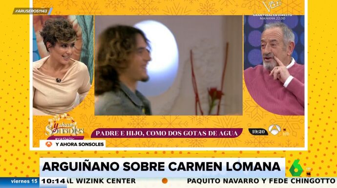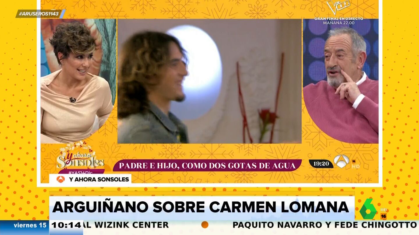 Alfonso Arús enseña en el plató de Aruser@s el zasca de Karlos Arguiñano a Carmen Lomana al hablar de su trayectoria en televisión en el programa de Sonsoles Ónega. "Yo tengo 75 años, ya he llegado a la cumbre, soy el mayor de los que aparecemos en televisión", asegura el chef, que destaca que Carmen Lomana y él son "de la misma quinta".