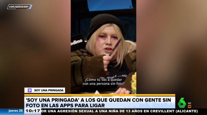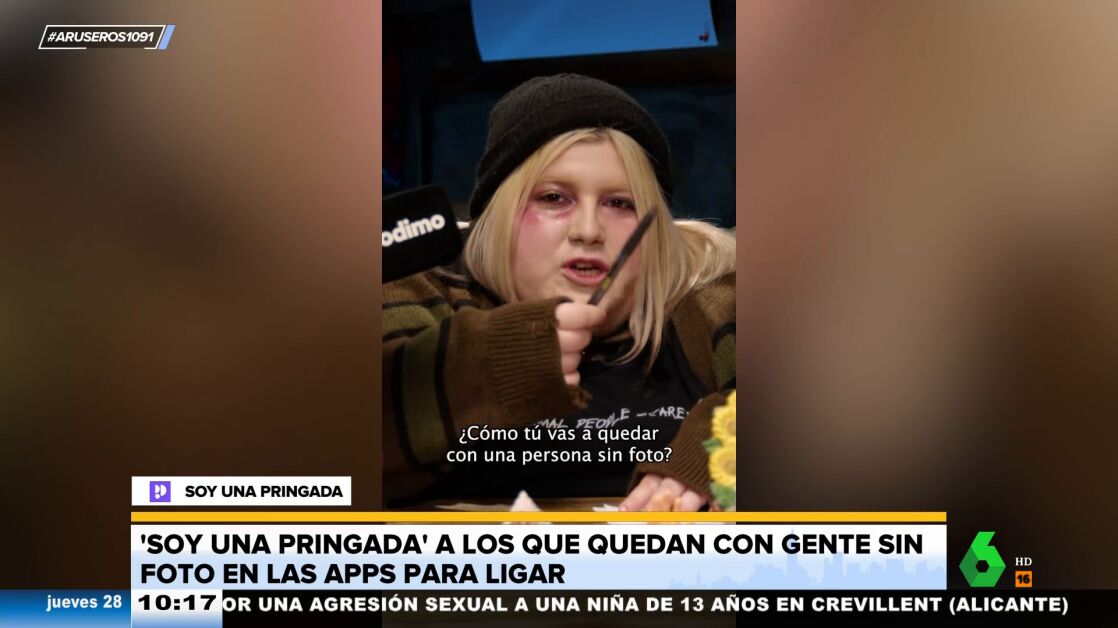 Alfonso Arús enseña el dardo de 'Soy una pringada' a la gente que queda con usuarios a través de aplicaciones para ligar que no tienen foto. "¿Cómo vas a quedar con una persona sin foto?", afirma indignada 'Soy una pringada', que destaca que "luego la gente se queja".