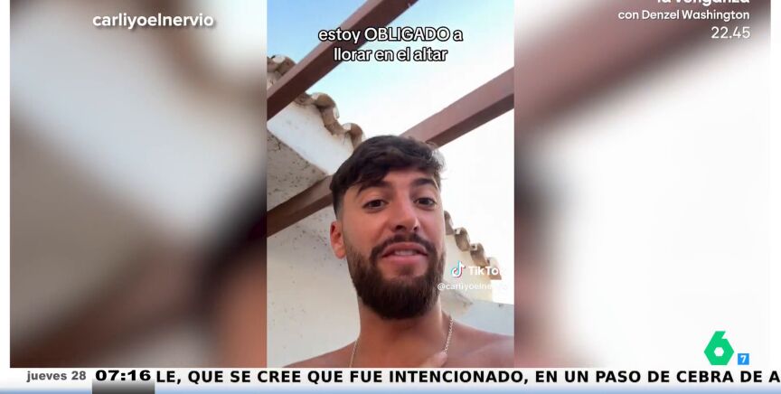 "Es que es capaz de dejarme si no me pongo a llorar al verla vestida de blanco", se teme. "Lloraré si puedo llorar... Es que tengo una presión en el pecho...", lamenta. "¿Tengo que ponerme un tutorial para ver cómo tengo que llorar?", se pregunta en este divertido vídeo que recoge el programa de laSexta.