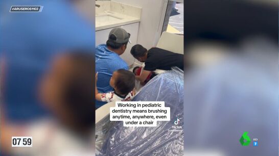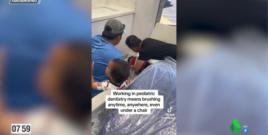 "Qué gran profesional que lejos de intentar reducir al niño o hacer que se siente en su silla, es comprensivo y se acerca a él para que se haga el tratamiento", observa Tatiana Arús en plató. "Hay muchos dentistas que lo que hacen con los chiquitines es enseñarles primero el ruido, les dejan jugar con el aparato...", añade Angie Cárdenas.