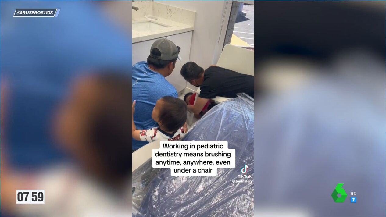 Da igual donde se haya escondido este niño o lo que llore o patalee, porque su dentista le va a atrapar igualmente. Así lo demuestra este vídeo emitido en Aruser@s, que no ha tardado en hacerse viral, que muestra el traumático momento en el que el pequeño es 'cazado' por su odontólogo debajo de una silla y allí mismo se pone a realizarle la operación prevista.