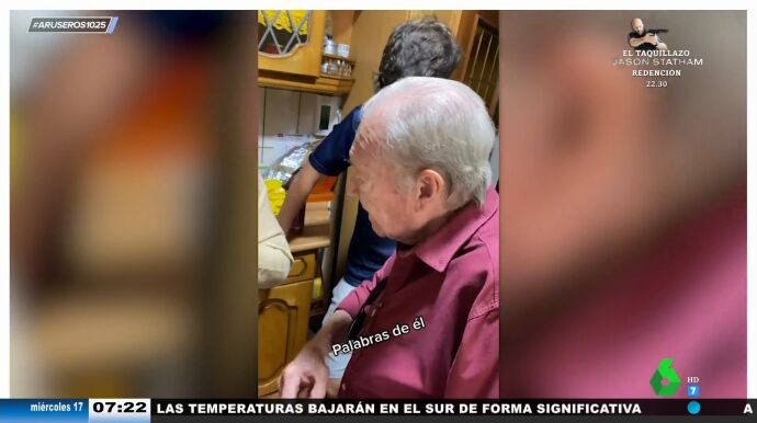 "Son letras nada más", afirma el señor mientras que la señora destaca que ya está harta de ver tantos tatuajes. El joven afirma que le dijo al abuelo si quería ir con él al estudio y que su abuelo dijo que sí, pero, rápidamente el hombre interviene explicando que él se pensaba que era el estudio de Televisión Española.