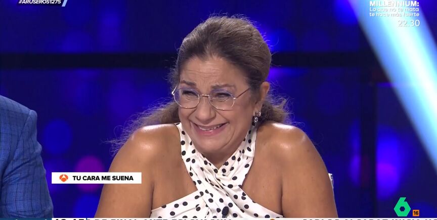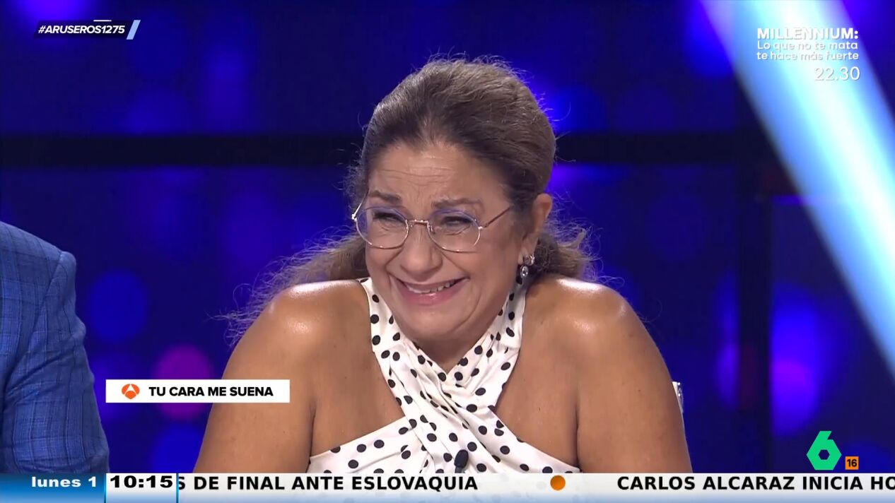 Lolita Flores carga contra los artistas que interpretan en el programa de 'Tu cara me suena', del que es jueza. Esta vez la cantante le dedica un cómico 'zasca' a Valeria Ros que hace estallar de risa a los allí presentes.