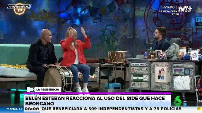 Belén Esteban y David Broncano debaten en La Resistencia un tema casi tan controvertido como el de la presencia de cebolla en una tortilla de patatas. ¿Bidé o no bidé? Esa es la cuestión. La de San Blas lo tiene claro.