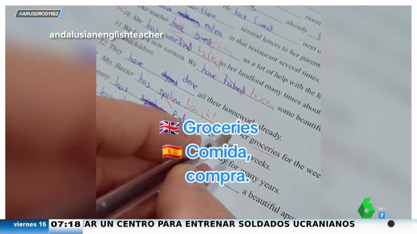 "Se ha hecho muy viral este profesor de inglés con un alumno", destaca Alfonso Arús en el plató de Aruser@, donde Hans Arús enseña el vídeo que se ha vuelto viral por el acento andaluz del profesor inglés. "Esto está mal, Manuel", se oye decir al profesor en el vídeo, donde continúa corrigiendo a su alumno.