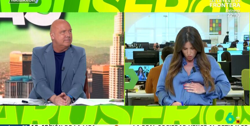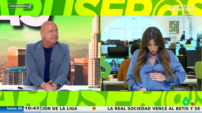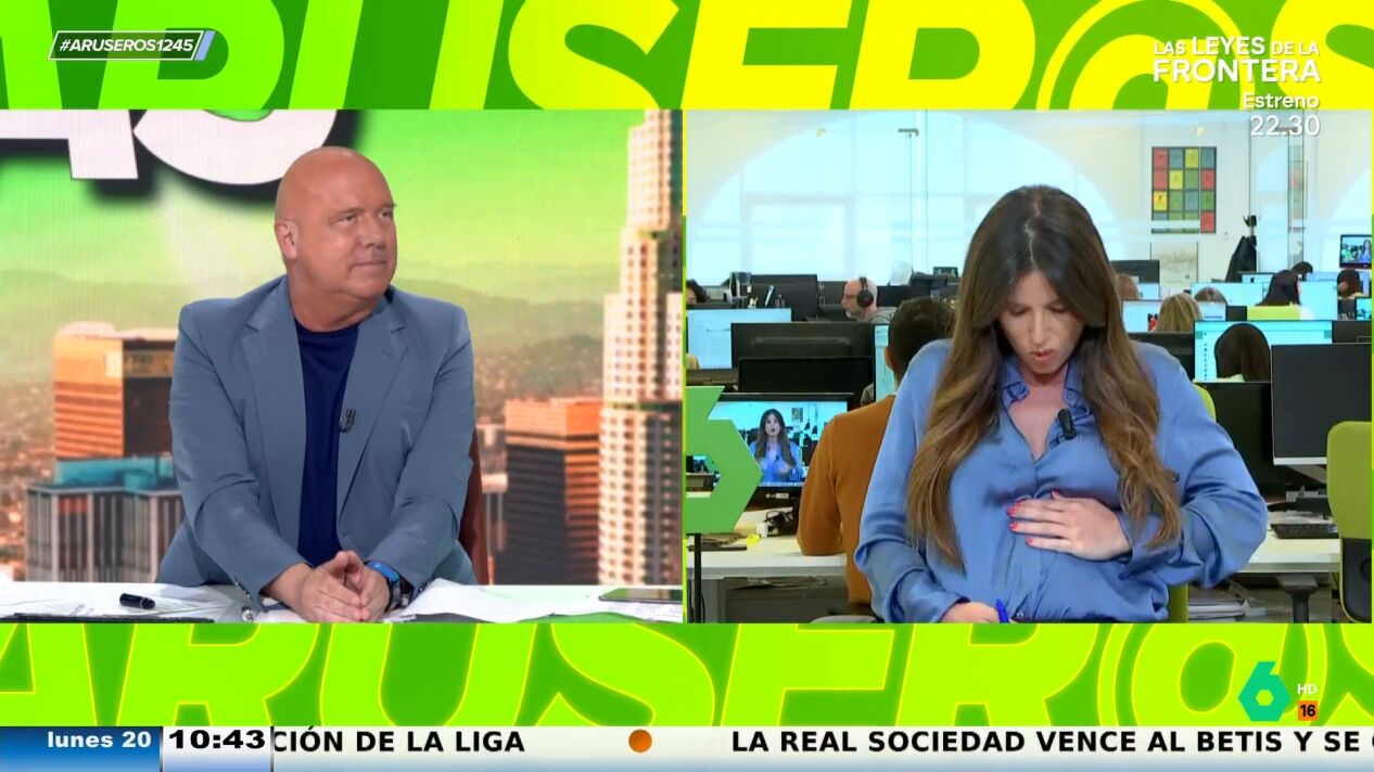 Alfonso Arús pregunta a Elizabeth López si su bebé da pataditas cuando la periodista cumple seis meses embarazada: "La verdad es que sí, ahora ya lo noto". "Hoy estoy ya de seis meses", destaca la joven, que afirma que tiene "un barrigón".
