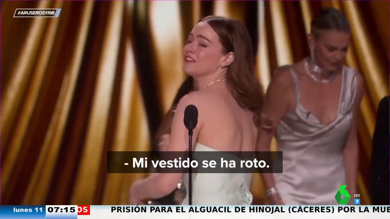 "Mi vestido se ha roto. Creo que ha sucedido durante 'I'm just Ken', estoy bastante segura", decía en cuanto tomaba la palabra, mostrando la cremallera, como podemos ver en este vídeo emitido en Aruser@s. Cabe destacar que este no es el único momento viral que han protagonizado los dos actores, pareja en otra de las grandes películas míticas de los Oscar 2016, 'La la land'.