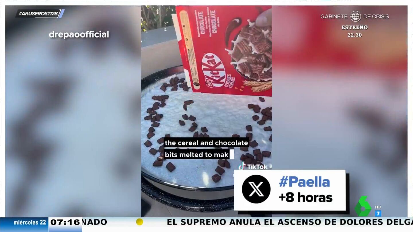 Hans Arús enseña un vídeo que se ha hecho viral durante ocho horas protagonizado por un tiktoker que ha sido duramente criticado por las paellas que hace. Y es que para el chico cualquier cosa es paella. "Él dice que estamos en un año donde se puede innovar con tu gastronomía", explica Hans Arús en el plató, donde Alfonso Arús responde que "independientemente de los ingredientes que lleve la paella valenciana esto parece una aberración".