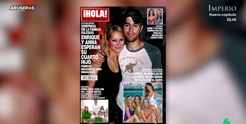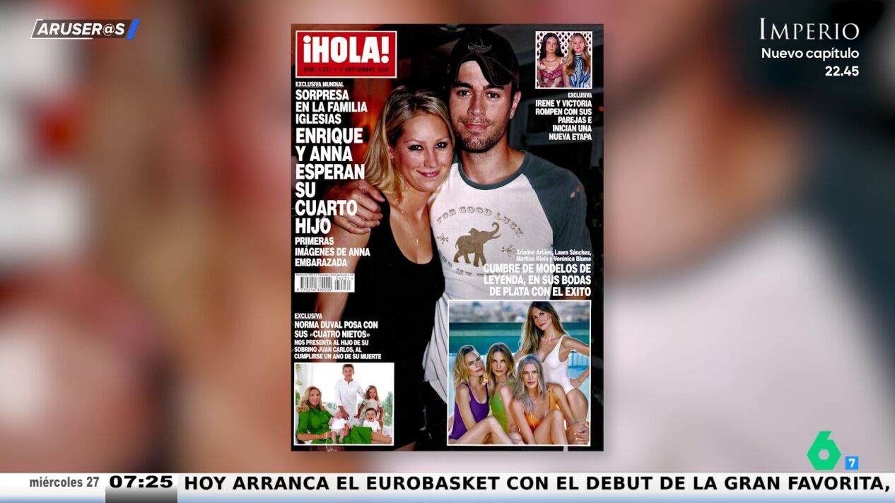 La revista '¡Hola!' nos trae hoy una grata sorpresa. ¡Enrique Iglesias y Anna Kournikova esperan a su cuarto hijo! Una noticia que Alfonso Arús destaca en el repaso que cada miércoles nos ofrece Aruser@s a las portadas de la prensa del corazón.