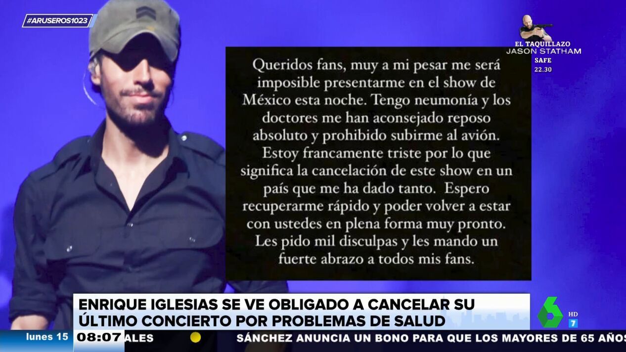 Enrique Iglesias cancela su concierto en México: "Tengo neumonía y me han aconsejado reposo absoluto"