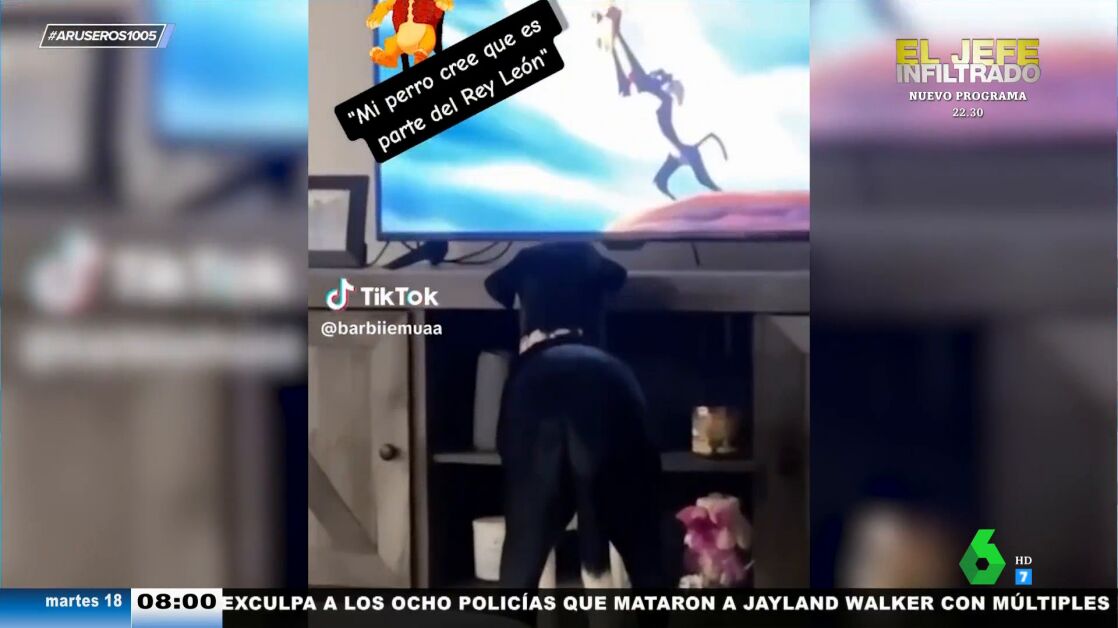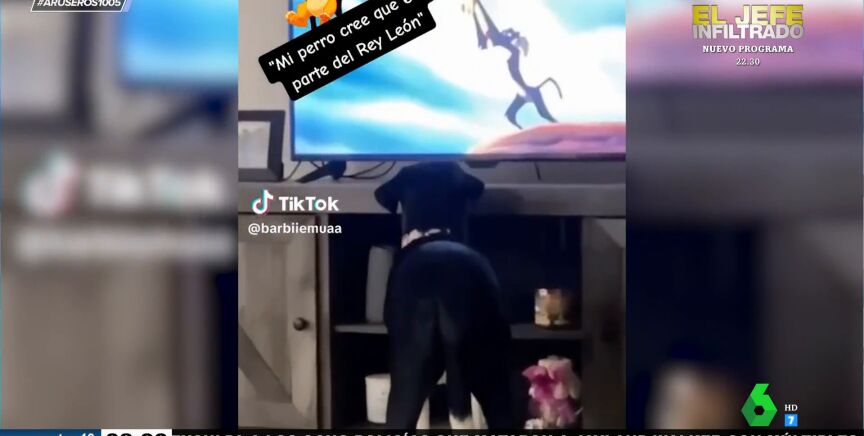 Pegado al televisor y sin perderse detalle de lo que allí ocurre, este perro sigue con atención todo lo que sucede en la película de dibujos animados de El Rey León, tal y como vemos en este vídeo de Aruser@s. La sorpresa llega cuando Rafiki presenta al pequeño Simba recién nacido a su pueblo y todos los animales de la sabana le rinden homenaje con una reverencia. Es en ese momento cuando el can decide inclinarse también ante el hijo de Mufasa.