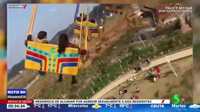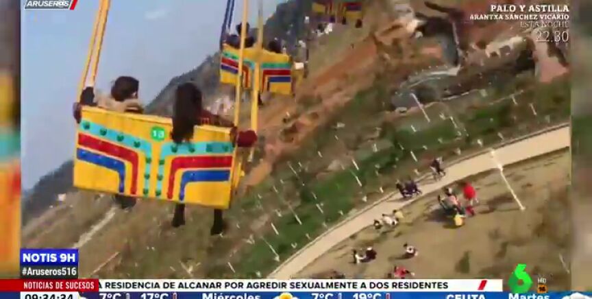 Escalofriante accidente de unas sillas voladoras en un parque de atracciones