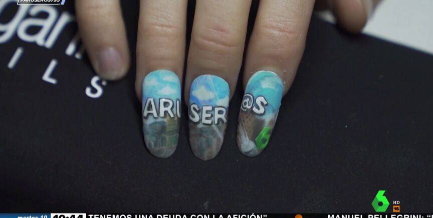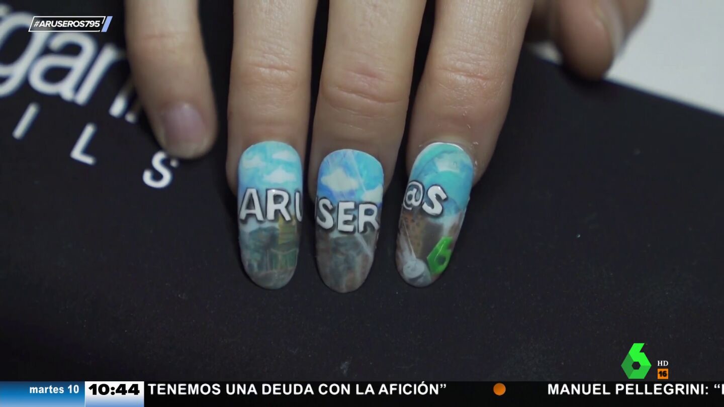 Como se muestra en el vídeo que acompaña a la noticia, Ania Iglesias ha compartido una espectacular manicura que recrea el logotipo y la identidad visual del programa Aruser@s. Incluso, en miniatura, aparece el logo de laSexta.