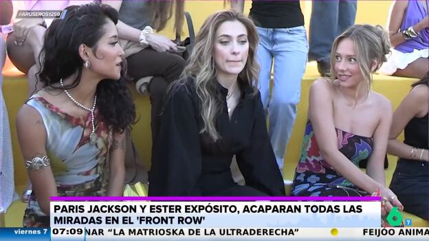 Tatiana Arús enseña en este vídeo cómo Ester Expósito y Paris Jackson estaban sentadas juntas en el desfile de Desigual, sin embargo, mientras la actriz saludaba a amigas como Greta Fernández, la hija de Michael Jackson tenía cara de circunstancias.