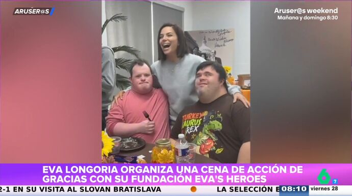 Eva Longoria ha organizado una cena de Acción de Gracias con su fundación con personas con discapacidad. "Me encanta porque esta señora es un 2.0", destaca Angie Cárdenas, que resalta que, en vez de hacer la comida con su familia la hace con todos ellos: "Me parece increíble porque tiene un cariño especial por todos ellos".