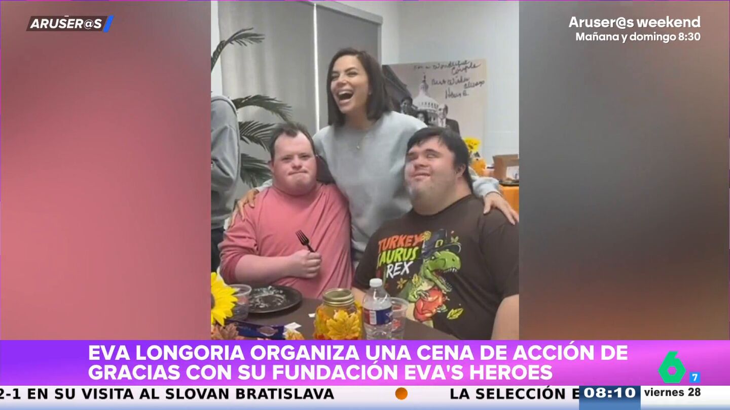A través de su fundación, Eva Longoria ha organizado por Acción de Gracias una cena con personas con discapacidad, demostrando ser una de las famosas más solidarias, como se puede ver en el vídeo.