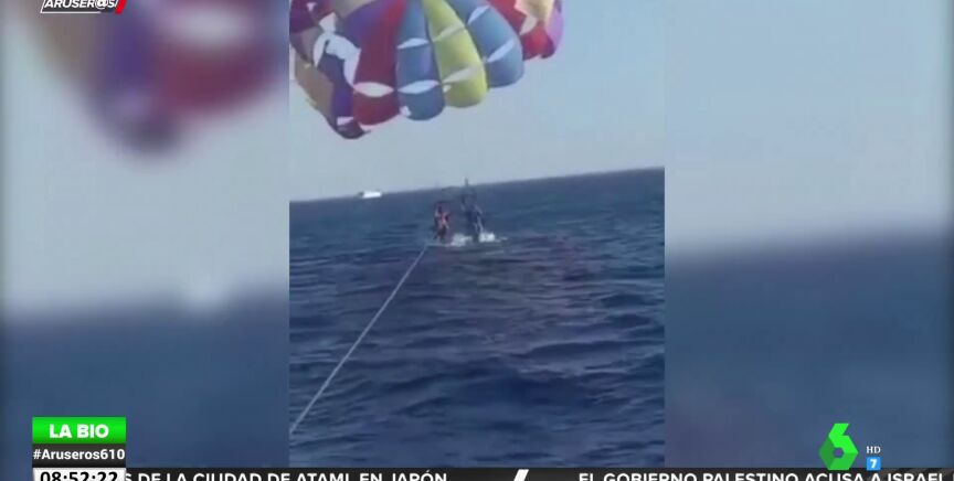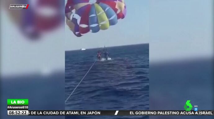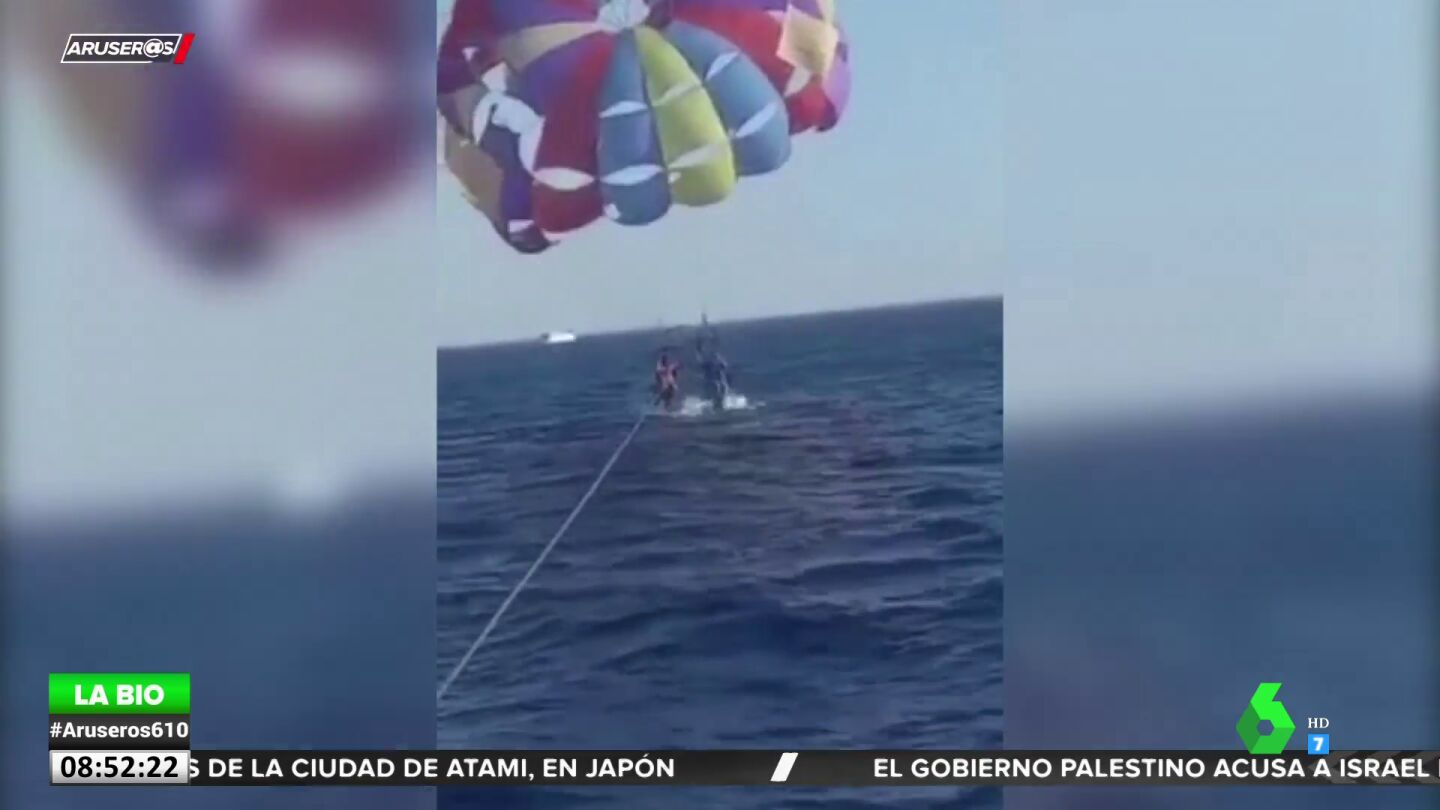 El momento en el que un tiburón muerde a un hombre mientras hace parasailing