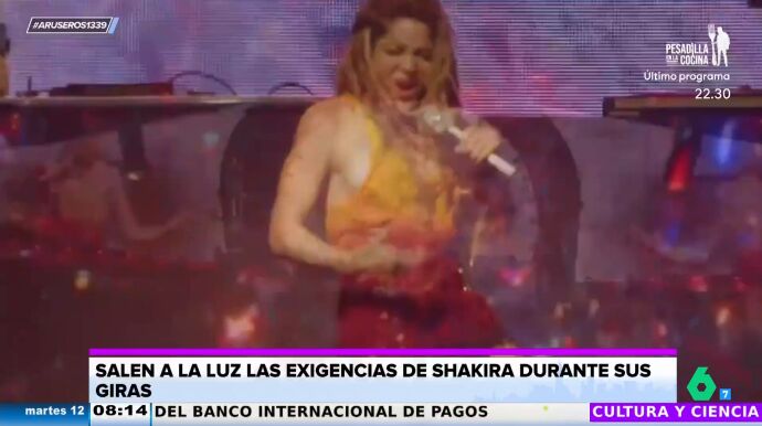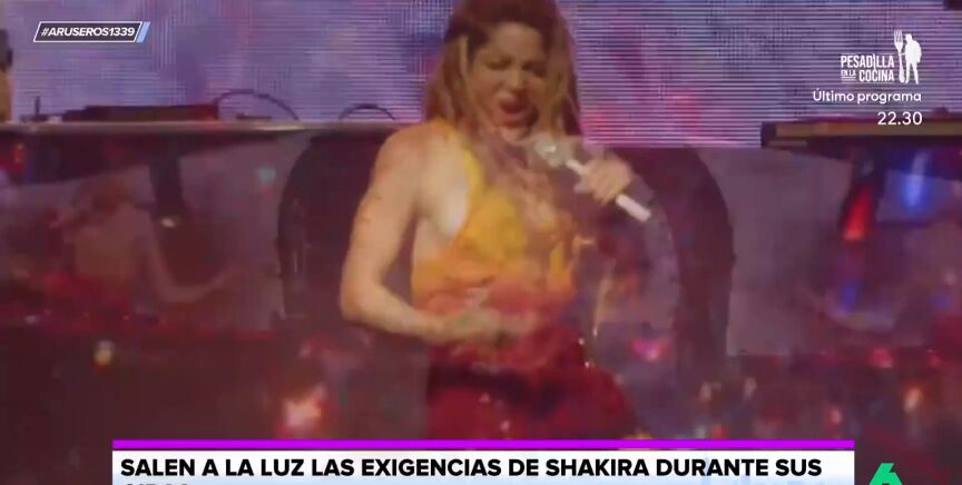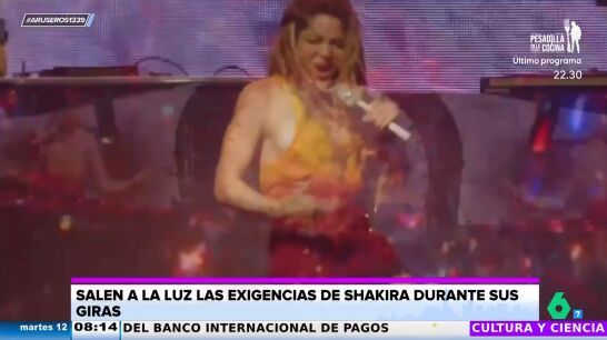 Han salido a la luz las exigencias a Shakira, y no son pocas. Según cuenta Tatiana Arús en el plató de Aruser@s, la artista, que está en plena gira de 'Las mujeres ya no lloran', exige que los servicios de sonido sean los de Taylor Swift, la coreógrafa de Beyoncé y los creativos del Circo del Sol.