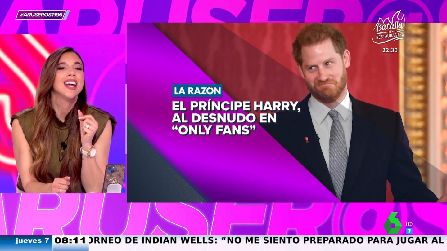 Tatiana Arús destaca que Carrie Royale, una exestríper que se habría besado con el príncipe Harry en Las Vegas en 2012, está amenazando al hermano del príncipe Guillermo con subir fotografías suyas sin ropa a 'Only Fans'. "Parece ser que se ha mosqueado después de que no la haya incluido en su libro y ha dicho que si la gente quiere ver las fotos de Harry ligerito de ropa o desnudo hay que pagar su cuenta de 'Only Fans'", explica la colaboradora de Aruser@s.