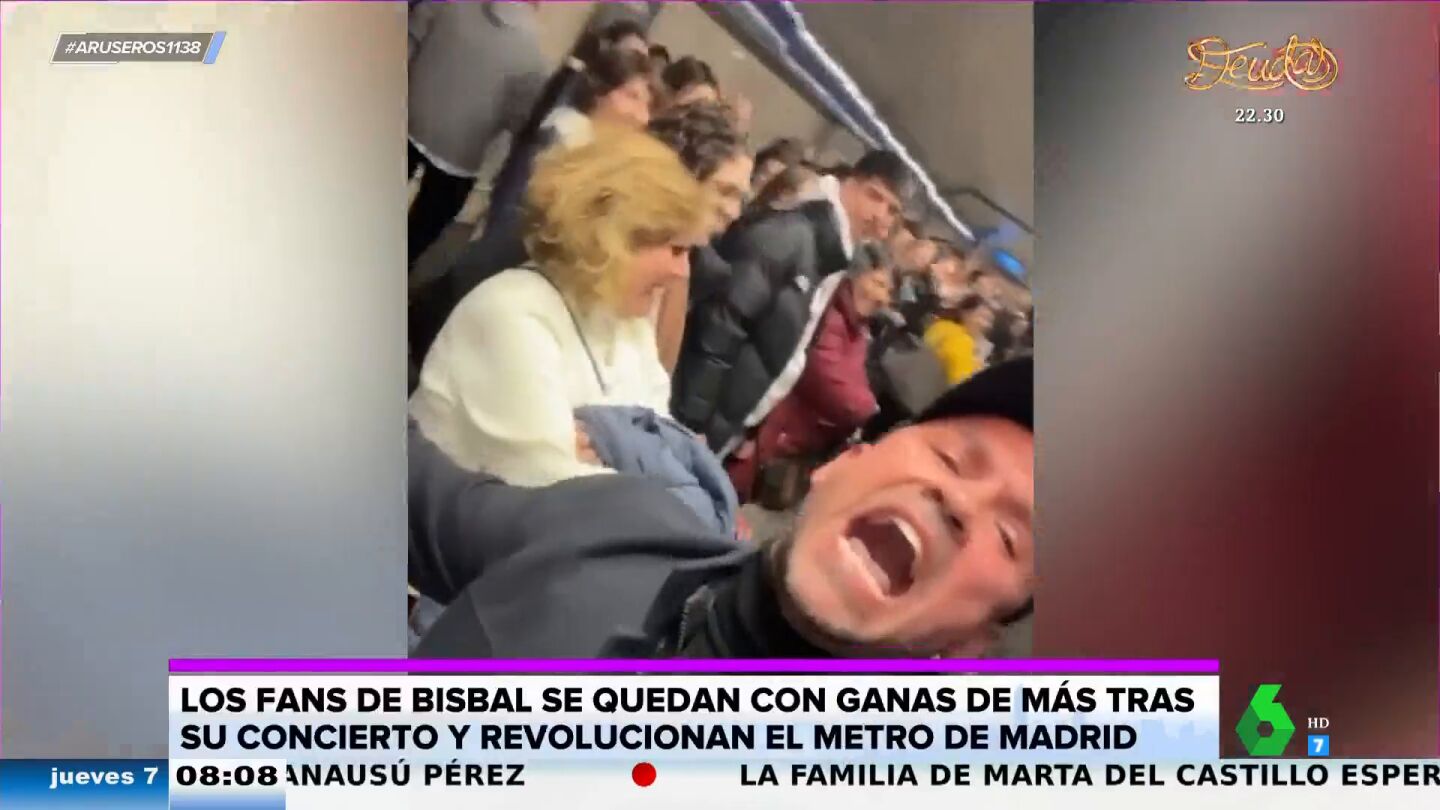 El resto de los pasajeros no tardaron en responder: "¿Cuándo serás mía?". A partir de ahí se desató la locura. "¡Si me quisieras, todo te daría!", seguían gritando. "Cuidado, porque si da esas vueltas típicas de Bisbal, acaba en la vía, fijo", se preocupa Alfonso Arús en plató.