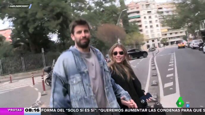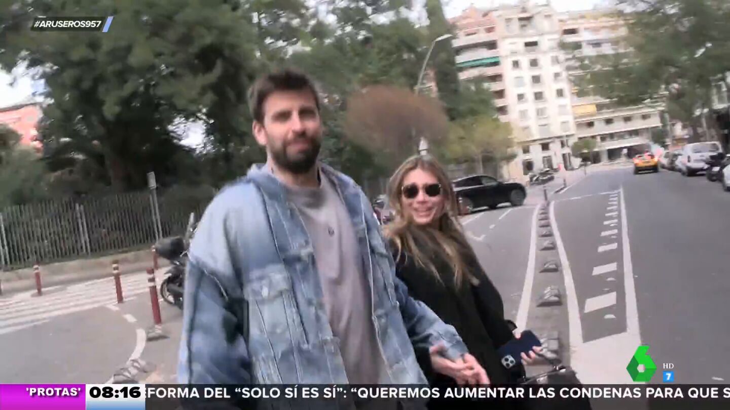 Con prisas, de la mano y muy sonrientes. Así se muestran Gerard Piqué y Clara Chía en este vídeo en el que un reportero pregunta al exfutbolista unas cuestiones en las que parece no estar demasiado acertado a juzgar por las reacciones del exfutbolista.