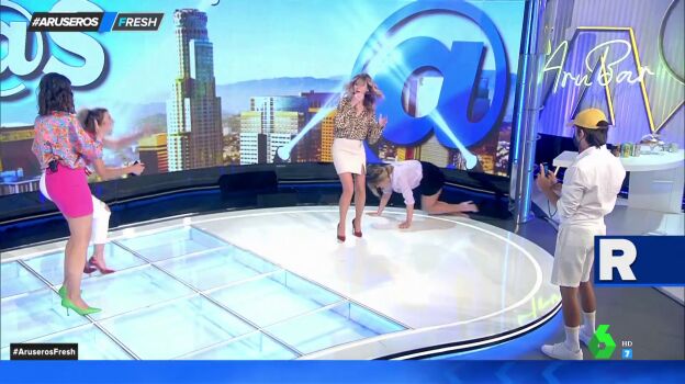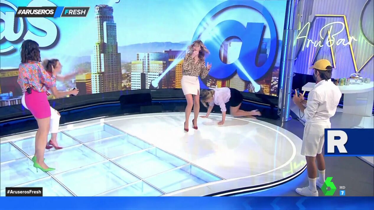 Las cámaras de Aruser@s captaron el momento exacto en el que Rocío "Pifostio" Cano se tropezaba con un desnivel de una plataforma del escenario y caía el suelo. Por suerte, la colaboradora salió completamente ilesa del divertido incidente.