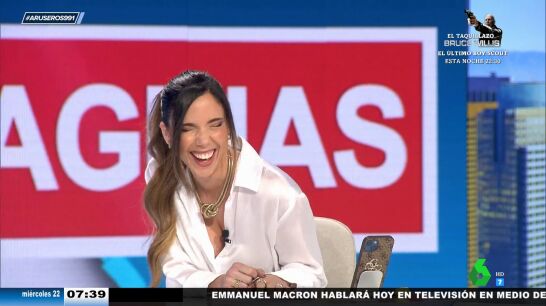 El presentador del programa casi no deja hablar a la pobre Alba Gutiérrez. "Si sois iguales. Tu marido y tú sois dos como dos gotas de agua", le dice a su colaboradora, que afirma que, a pesar de ello, tienen gustos diferentes y que cada uno tenga su espacio es fundamental.