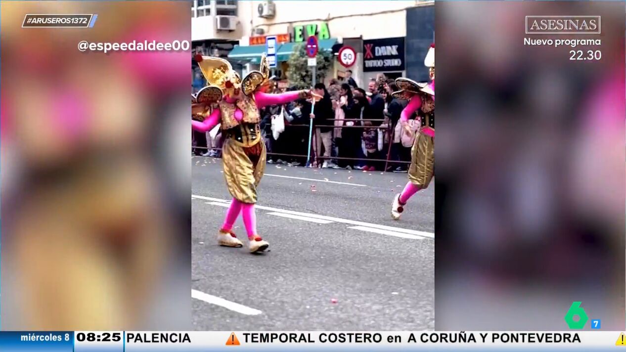 Los virales sobre las cabalgatas de los Reyes Magos no dejan de sorprender a los tertulianos de Aruser@s en el plató. Desde auténticos 'momentazos' con el rey Baltasar, muñecos hinchables sospechosos, pasando por divertidos 'zascas' de los que piden sus deseos a sus majestades de Oriente,hasta la inesperada reacción del niño que le preguntó a José Luis Martínez-Almeida por su carta.