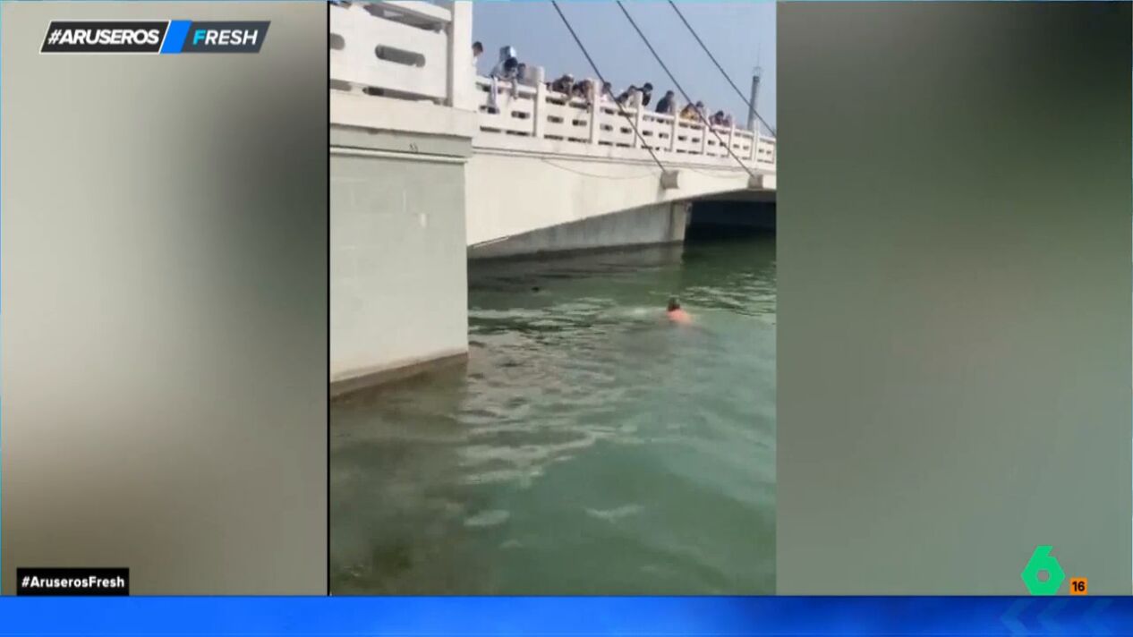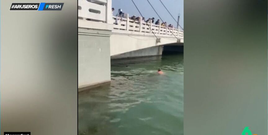 Lo curioso de la escena es que había muchas personas viendo el acto del anciano y ninguno se tiró al agua a ayudar a la niña. En el plató de Aruser@s, todos los tertulianos aplauden el heroico acto del señor. "Debe ser el único del puente que sabe nadar", opinaba María Moya al ver que ninguno de los presentes se lanzó al agua a ayudar a la pequeña.