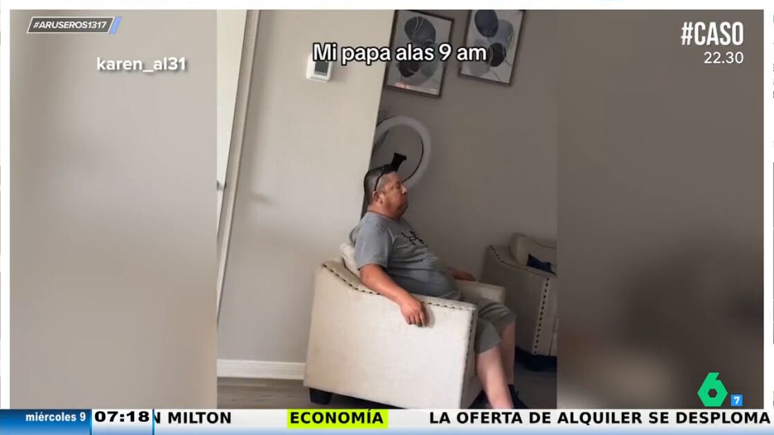 Un hombre presume de madrugar pero después se va durmiendo por la casa: su hija lo graba y crea un debate en redes