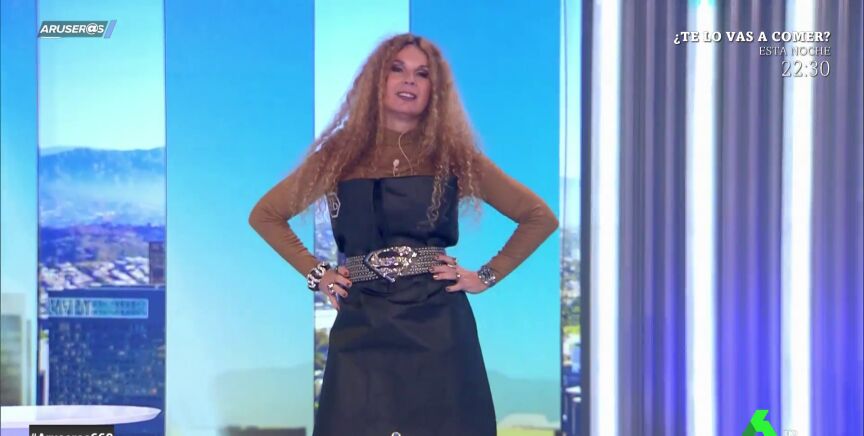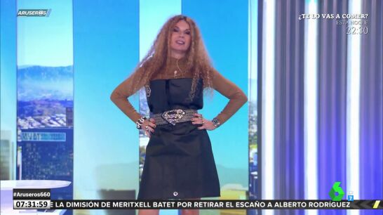 Las redes sociales apoyaron la iniciativa de la humorista y Angie Cárdenas ha querido homenajearla en Aruser@s vistiendo de la misma forma, aunque ella lo ha decorado a su manera: "Tiene múltiples utilidades: más escotado, más abierto, con hombreras...", comenta Alfonso Arús.