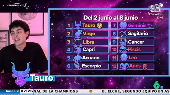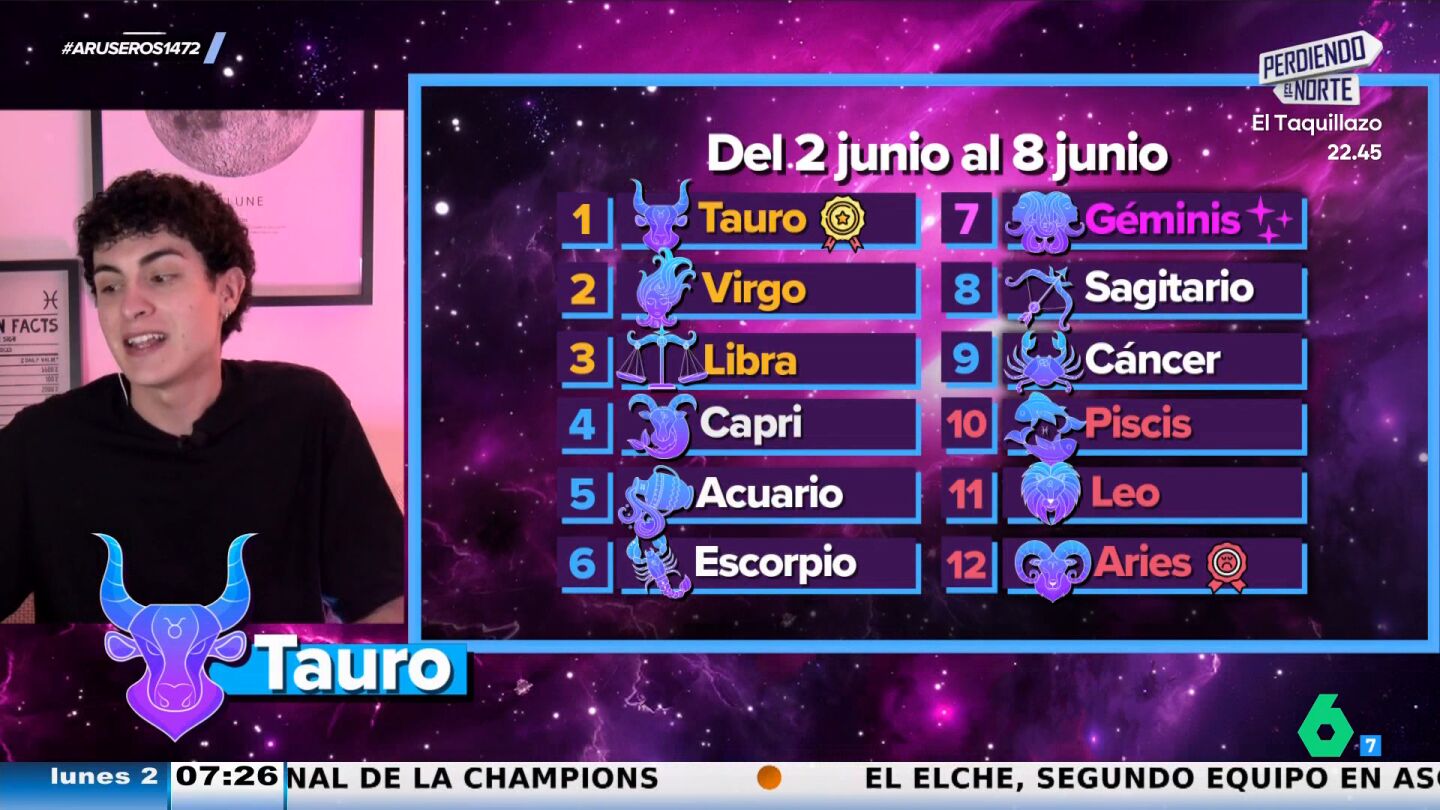Liderando la tabla está Tauro: Venus ingresa en este signo de tierra y favorecerá su plano más sensual en el terreno de las relaciones. A los Virgo, el segundo puesto de la lista les dará claridad y un apoyo de energía para afrontar los retos de la semana. Venus ingresando en un signo de tierra afectará también a Libra, que ocupa el tercer puesto del ranking: "Tendréis más estabilidad", dice Jabifus.