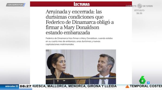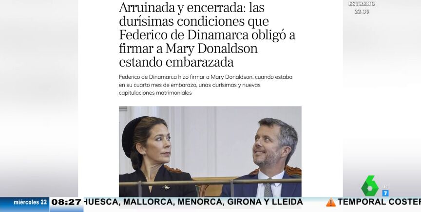 Además, tras la visible tensión entre el matrimonio a raíz de las polémicas fotografías, ha vuelto a resurgir el convenio que Federico de Dinamarca le hizo firmar a su mujer cuando estaba embarazada de cuatro meses de su segundo hijo. En este convenio, que habría sido por orden de la reina Margarita, debía renunciar a una indemnización millonaria si decidía separarse y quedaba, incluso, escrito que sería la propia reina la encargada de decidir dónde debería vivir Mary en caso de separación.