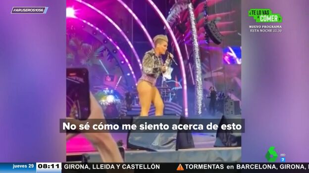 Pink no para de sufrir sorpresas durante los conciertos de su última gira. Tatiana Arús enseña en el vídeo principal de esta noticia cómo una fan la sorprendía en Londres entregándole las cenizas de su madre en pleno concierto. "Espera, ¿esta es tu mamá?", pregunta la cantante sorprendida sobre el escenario.
