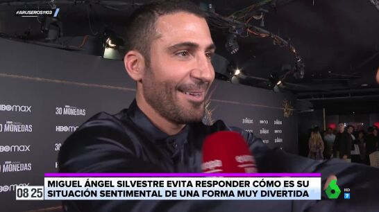 "¿Estás contento?, ¿estás feliz?, ¿y en el amor?", pregunta el reportero a Miguel Ángel Silvestre, que reacciona de una inesperada y divertida forma. Y es que, como se puede ver en el vídeo principal de esta noticia, entre risas e intentando esquivar las preguntas sobre su posible novia, el actor abraza hasta en dos ocasiones al reportero.